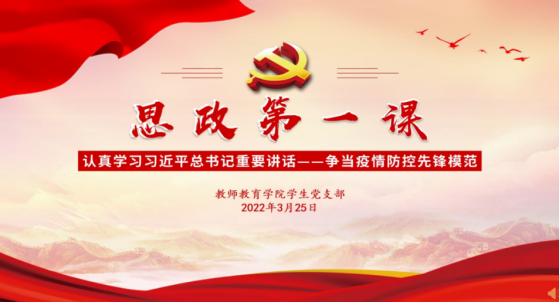 williamhill英国官网党总支2022年春季“思政第一课”为全面贯彻党的教育方针,深入落实《关于深化新时代学校思想政治理论课改革创新的若干意见》精神,加强学院思政课建设,充分发挥思政课在立德树人中的关键作用。2022年3月25日中午12:00,williamhill英国官网党总支彭博娜副书记以“学习习近平总书记重要讲话——争当疫情防控先锋模范”为主题为williamhill英国官网学生党支部党员、预备党员以及入党积极分子进行“思政第一课”...
