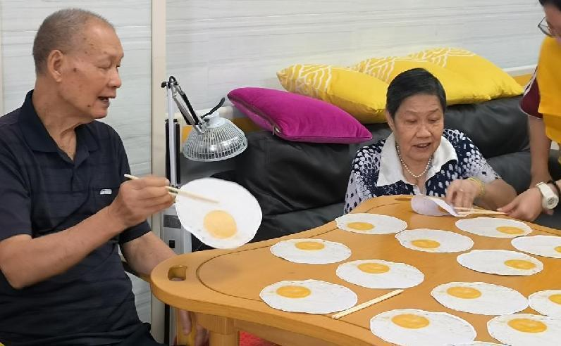 阳光倾洒,笑声回荡,一场别开生面的“翻炒荷包蛋”小游戏拉开帷幕。志愿者们与长者们围坐在一起参与这个有趣的小游戏,过程中,小小的荷包蛋在长者们的手中翻来翻去,体会着日常生活里的小幸福。期间,长者们虽然动作略显迟缓,但一个个金黄的荷包蛋在他们手里却特别活泼,还滋滋地响。此刻时间静止,只有欢声笑语。