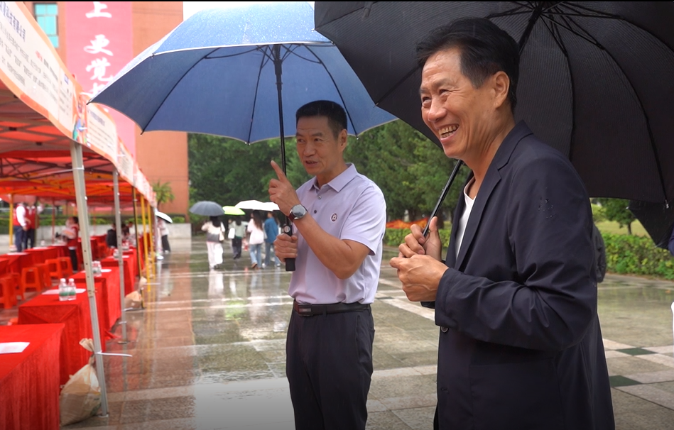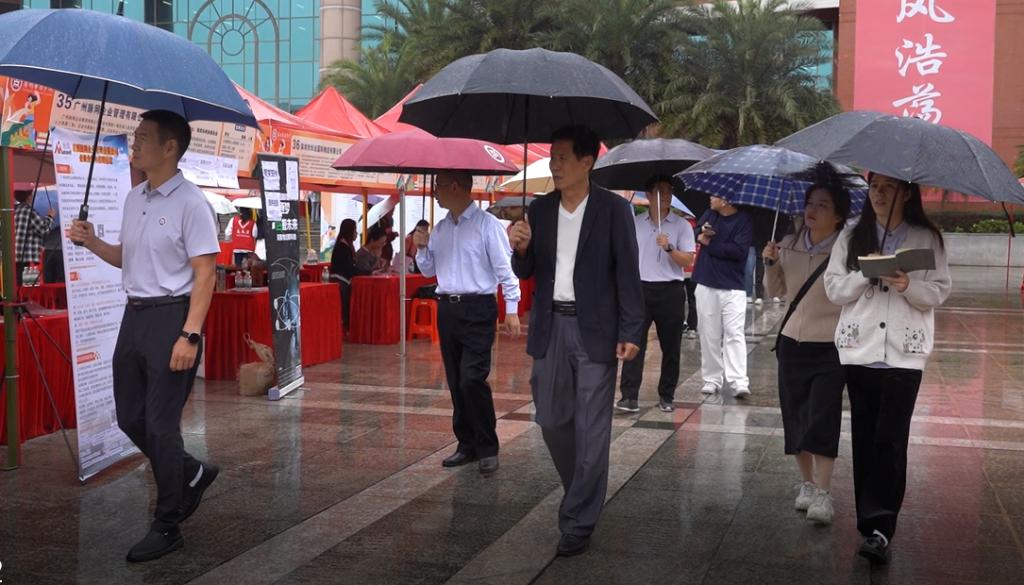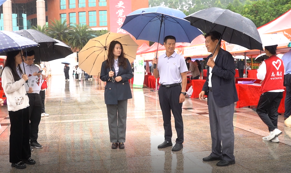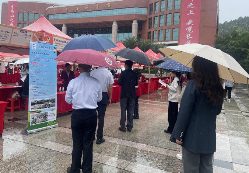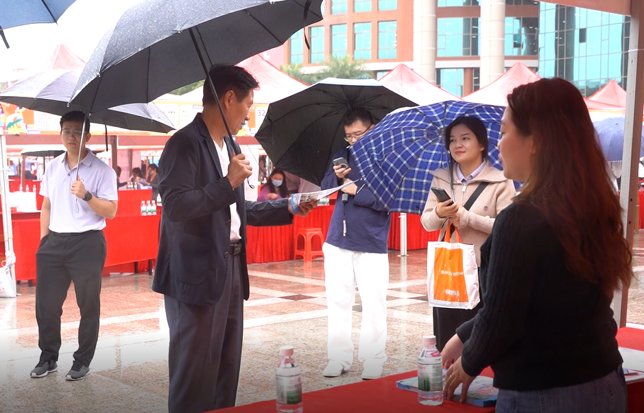 williamhill英国官网领导班子非常重视本次学校组织的招聘会,在王金道院长的带领下,williamhill英国官网领导班子、三办负责人以及学生辅导员亲临现场,了解本次招聘会的开展情况。尽管天气不佳,领导们还是顶着大雨,撑着伞前往现场,王院长等先后到东莞启航教育、广州华星教育、深圳龙岗金翅膀教育等招聘摊位进行考察,了解用人单位的用人需求以及对我们学院的学生评价。