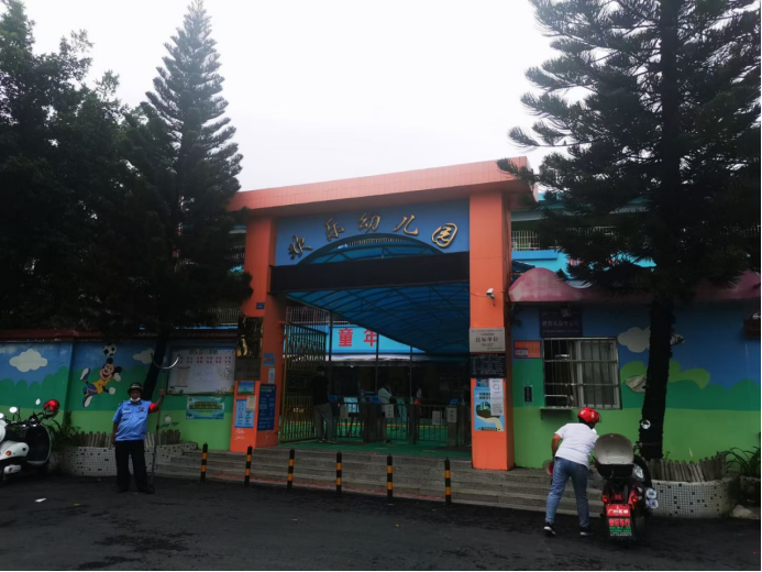 (师生在欢乐幼儿园门口合影留念)