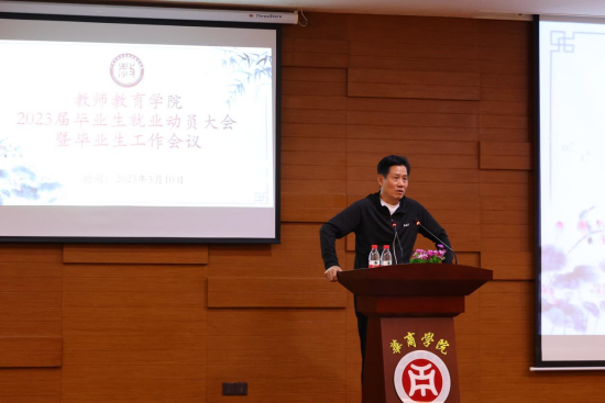 最后,williamhill英国官网王金道院长为本次就业动员大会做总结讲话,王金道院长首先部署了2023届毕业生就业工作的总体要求,指出“以学生为中心”是williamhill英国官网工作的基本方针,做好推进毕业生就业工作要“三力并施”:即学校老师提供就业信息是助推力,家庭的沟通是拉力,而学生本身是内驱力,三方需齐心协力落实好就业这个事情。其次,王院长强调就业是国家的事、学校的事、也是毕业生自己的事,就业及择业是两个概念,学前教育专业就业前景较好,同学们需积极与学校、学工办配合,进一步拓展就业渠道,端正就业态度,积极落实好就业岗位。
