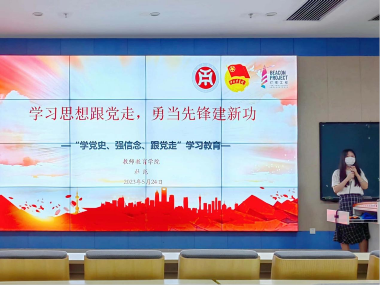 为学习贯彻习近平新时代中国特色社会主义思想,学习党的二十大精神,williamhill英国官网于5月23日和24日分别在增城校区与四会校区深入开展了“学习思想跟党走,勇当先锋建新功”主题教育团课,课程内容由williamhill英国官网团委书记邓奎、团委副书记杜范主讲,全体团委、学生会学生骨干听课学习。