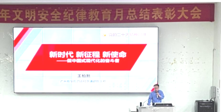 随后,王教授通过对党的二十大的分析,提出会议讲述的重点——走中国式现代化道路,并从“什么是中国式现代化”“为什么要走中国式现代化道路”“推进中国式现代化的重大原则”三个方面进行详细的分析和叙述。