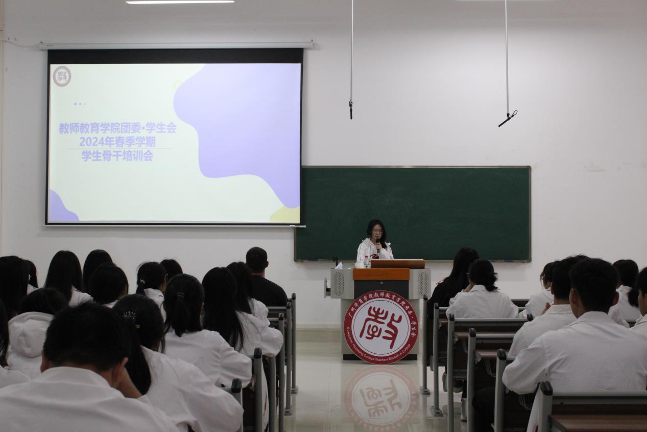 徐炯锋老师充分肯定团学工作取得的成绩,向为团学工作付出辛勤努力的师生表示感谢。他对团委、学生会工作人员寄予厚望,希望全体学生骨干充分发挥思想引领作用,主动充当学院和广大青年学生间的桥梁纽带,全心全意服务广大同学,并要求学生骨干要有完善自身建设与提升自我管理的能力,树立良好的学生骨干形象。