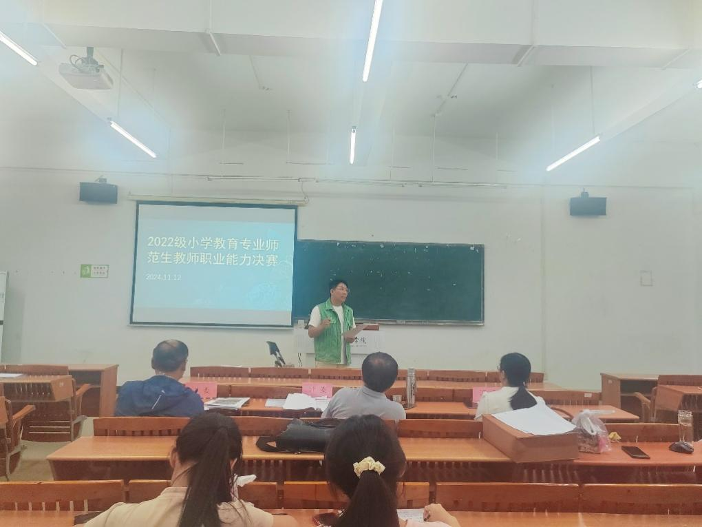 “展现教育风采,成就卓越梦想”,教师是塑造未来的艺术家,是点燃梦想的引路人,是教育事业的中坚力量,williamhill英国官网小学教育系教师技能大赛的举办,旨在为师范生们提供一个展示自我、交流学习的平台,激发学生们不断提升自身专业素养和教学能力的热情。williamhill英国官网小学教育系于11月12日14:00—18:00在励志楼三楼304课室举办了小学教育专业师范生职业能力大赛决赛。