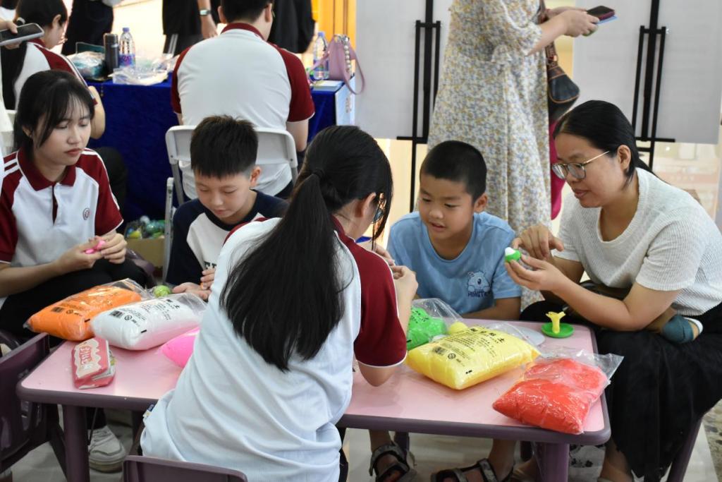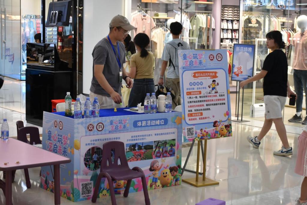 展演围绕小学教育和学前教育专业展开。小学教育专业六大展区各具特色:文化传承展区设置 “诗词大挑战・双节趣闯关”,激发儿童对传统文化的兴趣;数学游戏展区利用七巧板等教具设计趣味项目;英语活动区将端午元素融入字母学习;手工实践展区开展亲子彩蛋、龙舟制作;体育活动区以 “摸石头过河” 等游戏培养团队协作;社会服务展区为家长提供育儿咨询。