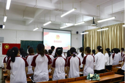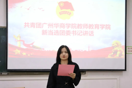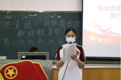 主持人宣读第一届委员会委员最终名单:朱娜、曾锦鸿、彭诗颖、何钰柔、江雨希。