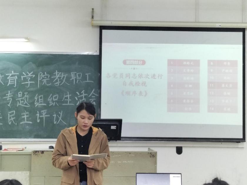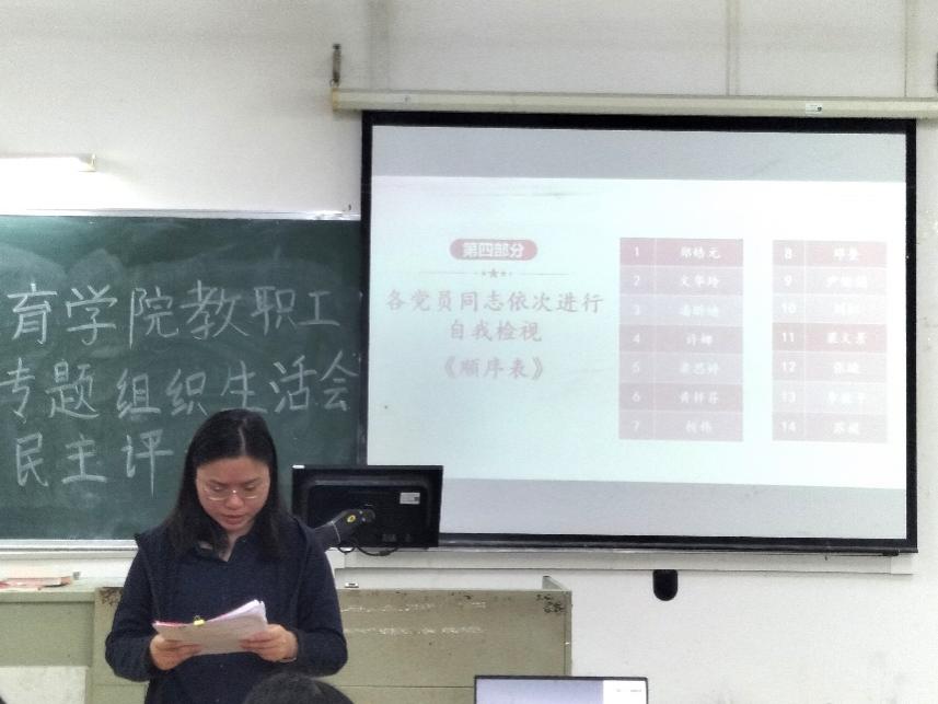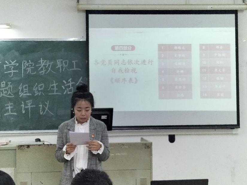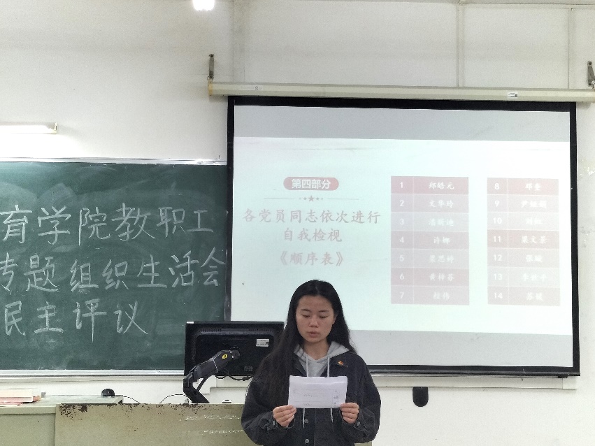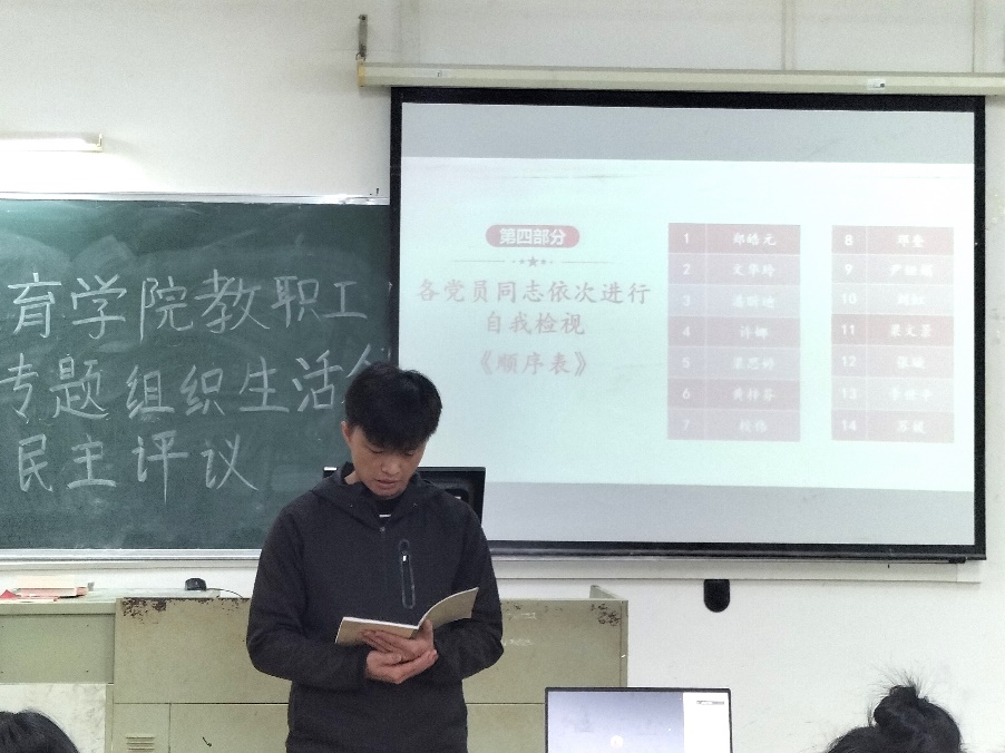 williamhill英国官网教职工党支部各同志分别对自己在工作、生活、思想等方面进行检视,进行批评与自我批评,党员间相互学习,认真分析自身不足,发扬自身优点,努力传承建党精神,坚定信心、砥砺奋进,做一名优秀的党员。