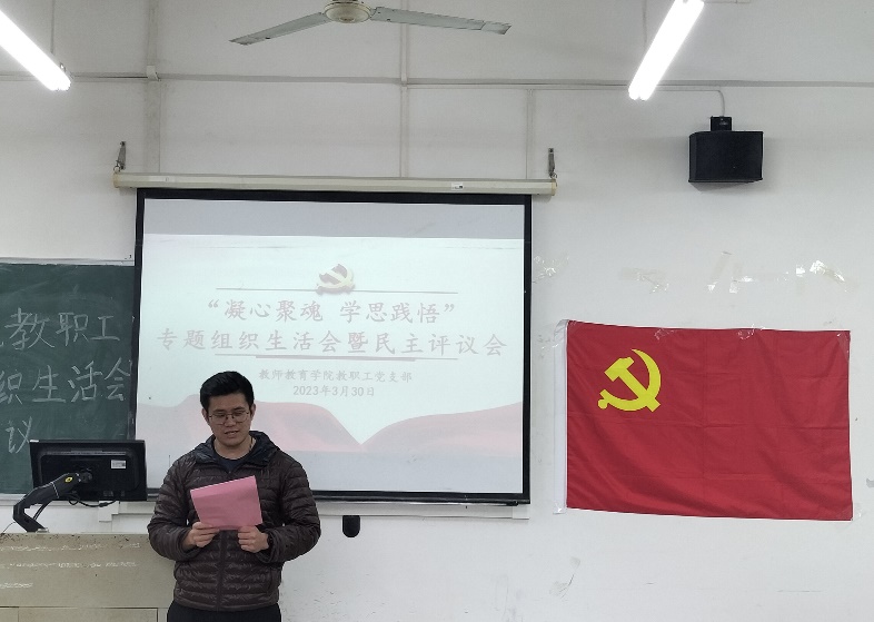 为深入贯彻党的二十大报告精神,领会马克思主义立场观点方法,于2023年3月30日中午12:00,williamhill英国官网教职工党支部于厚德楼C201正式召开“凝心聚魂、学思践悟”专题组织生活会暨民主评议会。本次会议参会人员为williamhill英国官网教职工党支部全体同志,由郑皓元同志主持。