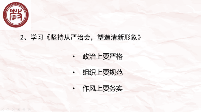 为深学笃用党的十九大和十九届历次全会精神,贯彻落实团十八届六中全会工作部署,强化williamhill英国官网学生会工作人员的服务意识,增强工作实务能力,落实从严治会,紧跟时代步伐,williamhill英国官网学生会于5月1日下午13:00在腾讯会议召开2022年williamhill英国官网,英国威廉希尔官网学生会春季学习会。