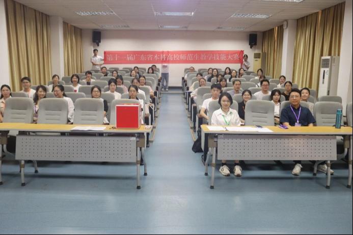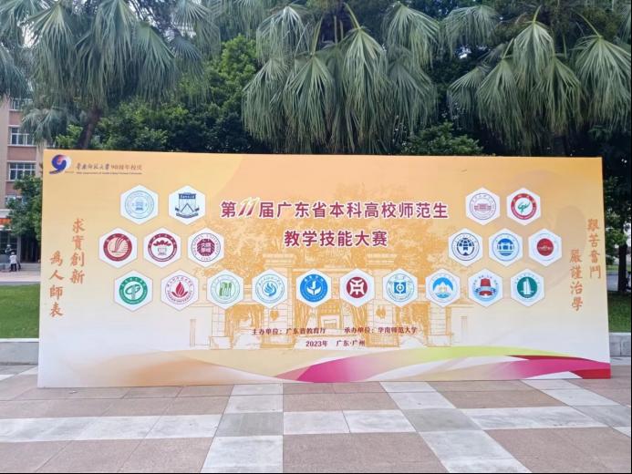 广东省本科高校师范生教学技能大赛是省内规模最大、影响最广的高水平师范生教学技能竞赛。我校学子和东莞理工学院、广州大学、华南师范大学、惠州学院、嘉应学院、岭南师范学院、韶关学院、韩山师范学院等高校学子同台竞技。据悉,大部分参赛选手都是以大四的学生为主,虽然我校本次选派的是大三学生,但是依然承受住了压力,展现了风采,获得了奖项。这里面既有学生积极努力的备战,指导教师的精心训练,更离不开学院王金道院长、谭建生和张博副院长、系主任王符和潘昕迪、专业负责人李志厚等领导老师的高度重视和全力支持。