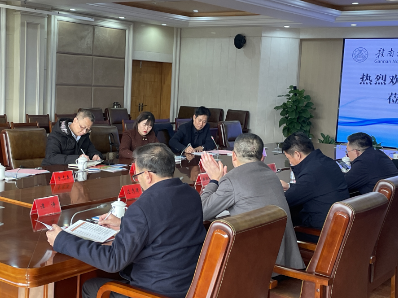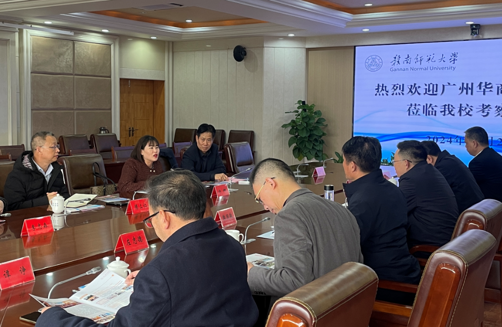 12 月 23 日上午,代表团拜访赣南师范大学,赣南师范大学易龙副校长、人事处樊国敬处长、研究生院管立新院长、教育科学学院左志德书记、教育科学学院邱小健院长、教务处谭诤副处长等领导予以热情接待。座谈会上,易龙副校长对代表团的拜访表示热烈欢迎,同时全面介绍赣南师范大学的发展历史、学科建设、师资队伍建设以及硕博点申报等情况,展现了该校深厚的底蕴与卓越成就。