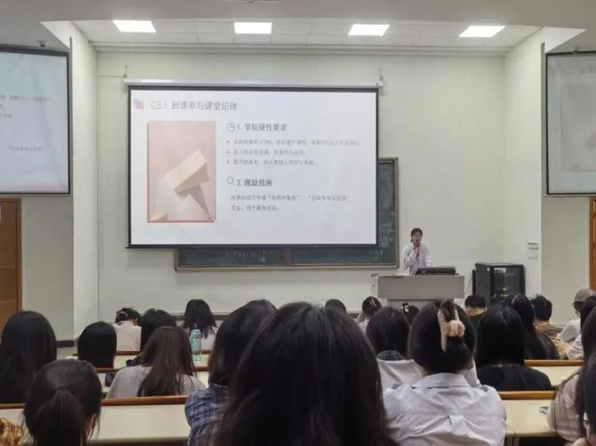 班会强调了学生事务管理的规范性,详细解读了课程与学分管理流程,要求学生通过教科办统一办理相关事务,并提醒学生通过多种方式咨询,避免因信息不畅影响学业;请假制度方面,明确要求非紧急情况需提前1天提交假条,经辅导员和任课教师双重审批;紧急情况需及时报备并补交材料,严禁谎假行为,违者将严肃处理;同时,williamhill英国官网对到课率提出硬性要求(≥98%),并将图书借阅率和课堂“抬头率”纳入平时分考核,优秀班级还可参评“创先争优示范班”并获得活动奖金。