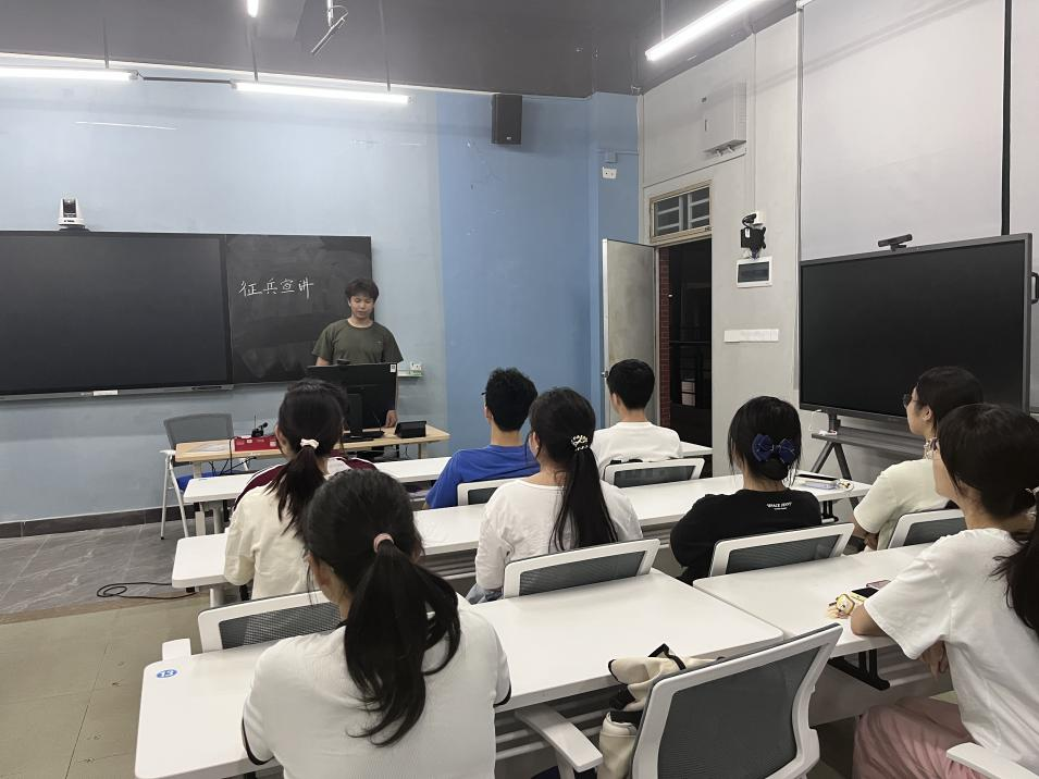 宣讲会上,陈钦浩同学首先阐述了依法服兵役的重要意义。《中华人民共和国宪法》规定,服兵役是公民的光荣义务,这不仅是法律要求,更是新时代青年家国情怀与责任担当的体现。他还列举了当兵的好处,涵盖强健体魄、结识战友、积累经历、助力就业等多个方面。在部队,严格训练能练就过硬身体素质,培养坚韧意志;服役经历在就业时备受认可,自主创业有政策扶持,为人生发展打下坚实基础。
