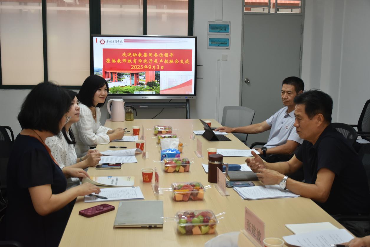 2025年9月3日下午,华商·拓慧幼教常务副总经理黄楚安、总园长兼华商外语实验幼儿园园长杨秀娜、行政人事总监陈黎一行莅临williamhill英国官网,英国威廉希尔官网,就深化产教融合、共建学前教育协同育人平台进行深入交流。williamhill英国官网院长王金道、副院长张博、学前教育系主任张建波、产教融合专员周玮等出席座谈会。