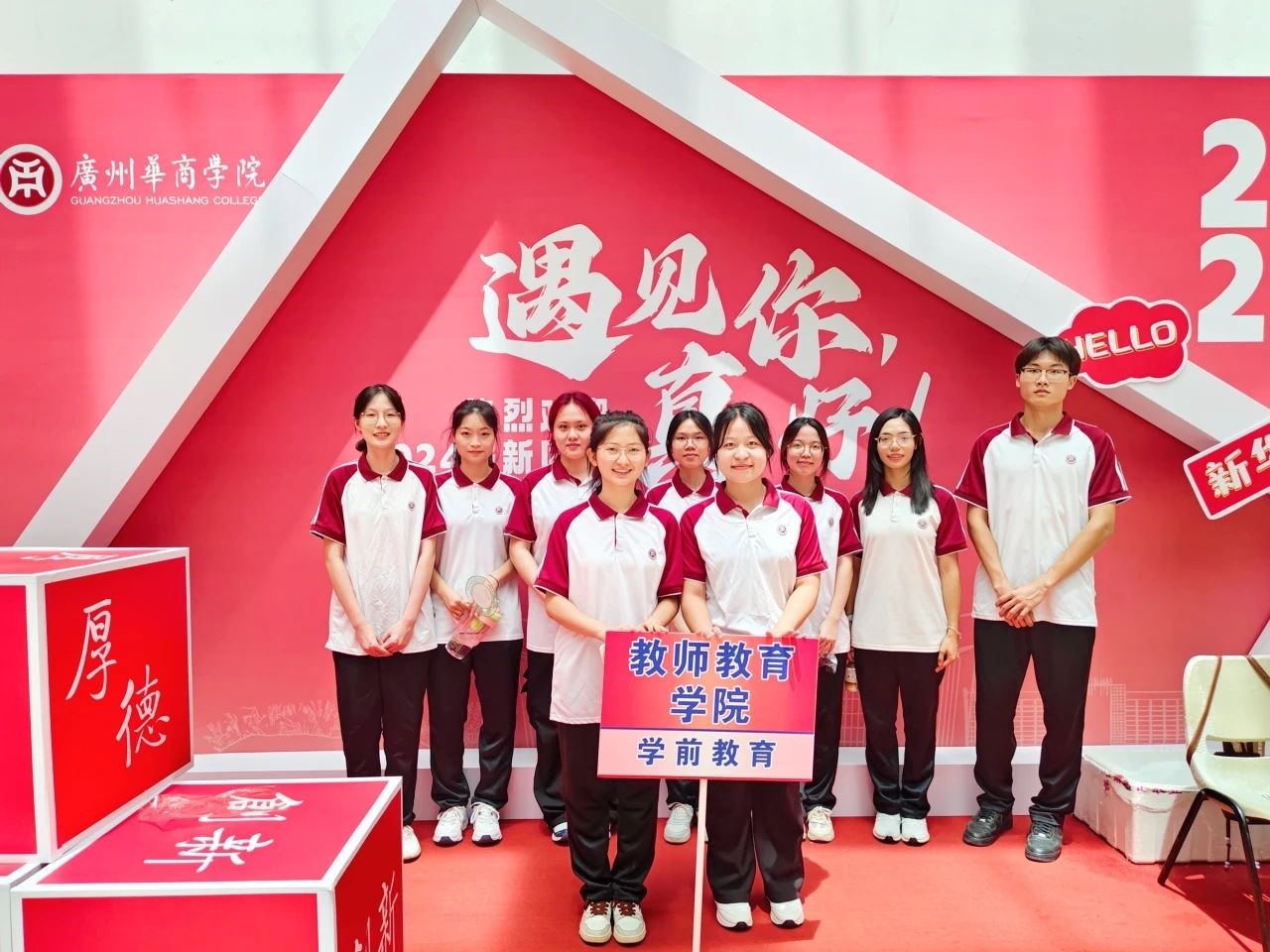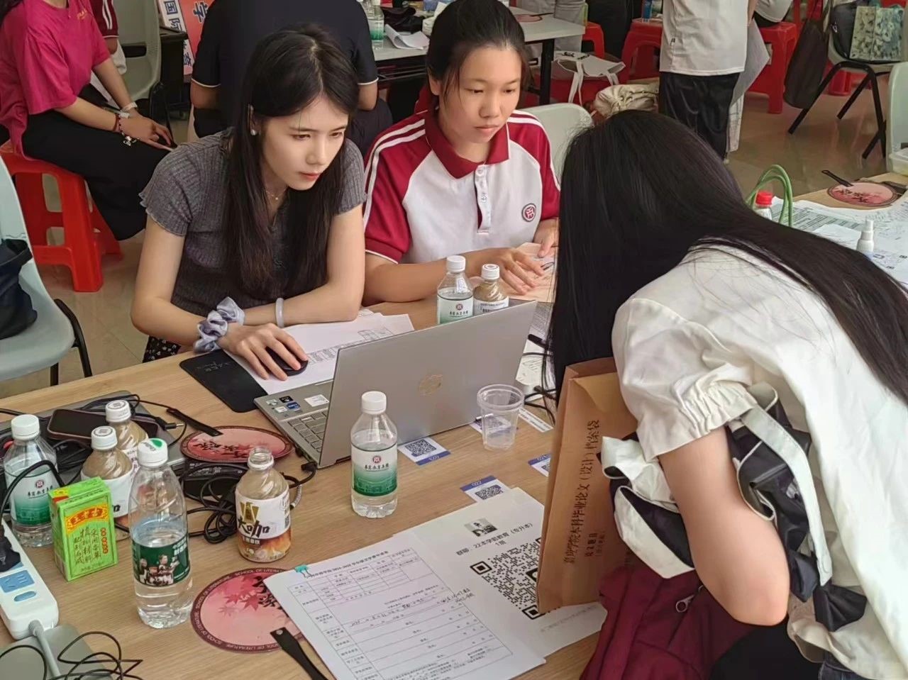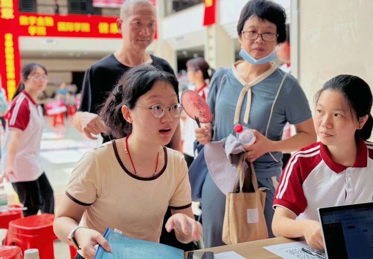 工作人员已经早早地在各个迎新点等候