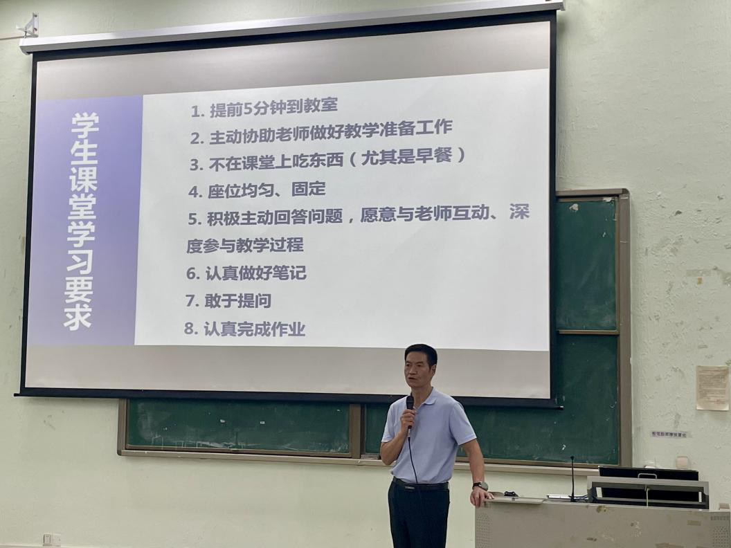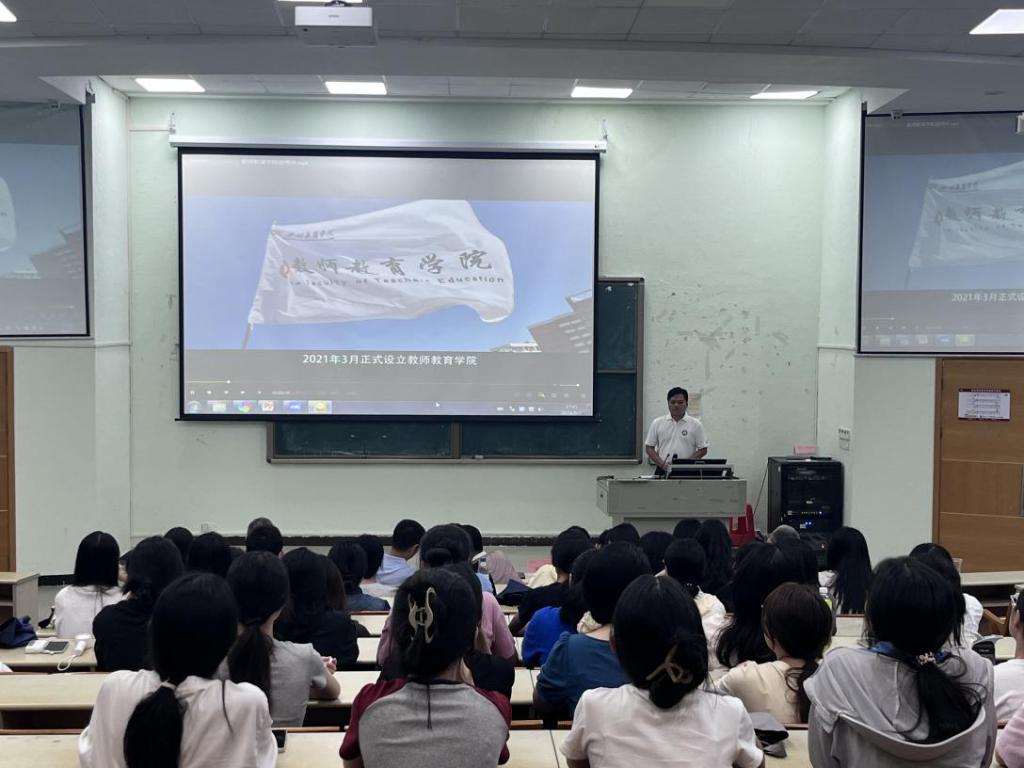 会议伊始,江庆基老师对新生表示热烈的欢迎和祝福,欢迎大家加入到williamhill英国官网,成为教院人!并通过观看一段精心制作的宣传片,一同走进williamhill英国官网,感受她深厚的文化底蕴、卓越的教学成果以及师生们积极向上的精神风貌,让大家对williamhill英国官网有了更好认识和了解。