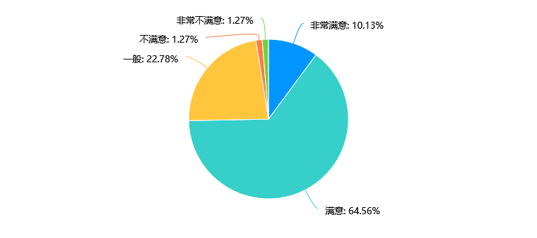 数据显示,毕业生对学校的人才培养质量的满意度主要集中在“满意”和“一般”两个选项上,分别占比64.56%和22.78%,而“非常满意”选项的比例较低,仅为10.13%。建议学校在人才培养质量方面可以加强教学质量、拓宽课程设置、提供更多实践机会等措施来改善学生满意度。