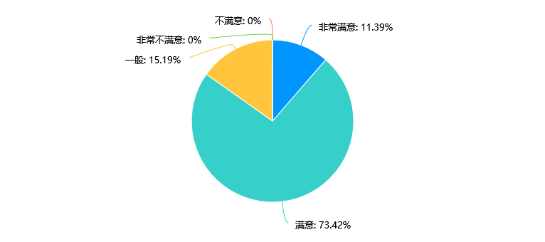 数据显示,大多数受访者(73.42%)对本专业的师资力量感到满意,11.39%的受访者则表示非常满意,15.19%的受访者认为一般。没有受访者表示不满意或非常不满意。