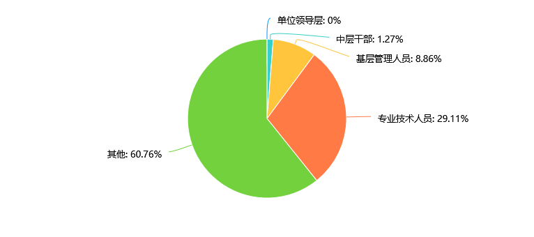 专业技术人员占比最高,达到29.11%,说明受访者中具有专业技术背景的人较多。中层干部和基层管理人员占比10.13,说明管理人才的培养小有成效,特别的是,其他职务占比较高,达到60.76%,说明选项设计不够科学,未来在选项设计时可以细分更多具体的职务类别,以提高数据的准确性和可分析性。