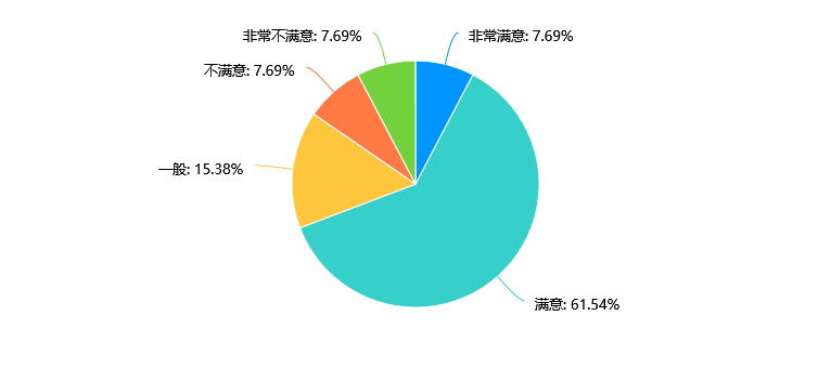 数据显示,大多数受访者对教师的教学方法感到满意或非常满意,占比达到69.23%。然而,仍有15.38%的受访者认为教师的教学方法一般,而不满意和非常不满意的受访者总计占比15.38%。建议学校和教师应该更加关注学生的反馈意见,针对不满意的部分进行改进和调整,提升教学质量和满意度。可以通过定期进行教学评估、听取学生意见和建议等方式来改善教学方法,提高教学效果。