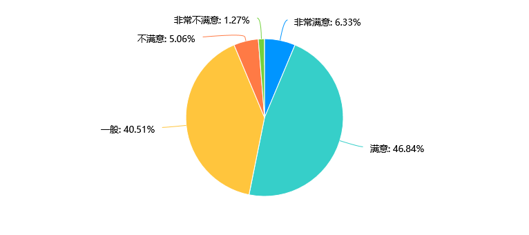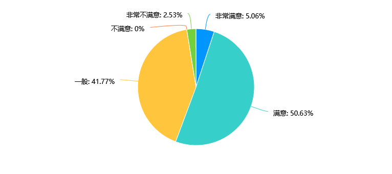 数据显示,大多数受访者对本专业的课程设置持满意态度,其中有58.23%的受访者选择“满意”,36.71%的受访者选择“一般”。仅有少部分受访者对课程设置不满意。学院需要继续保持满意度较高的基础上,根据一般满意和不满意的反馈,适当调整课程设置,以提升整体满意度。