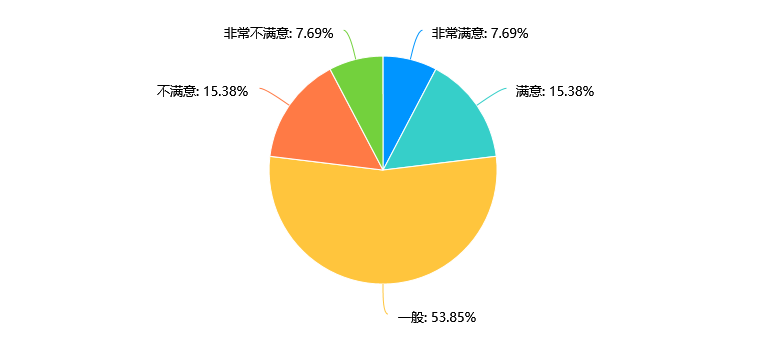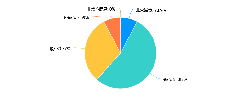 数据表明,超过半数(53.85%)的受访者对本专业的师资力量表示满意,而有30.77%的受访者认为师资力量一般,只有少数人对师资力量不满意或非常不满意。需要进一步提升师资力量的质量,可以加强师资队伍的培训和发展,提高教师的教学水平和专业素养,以更好地满足学生的学习需求。