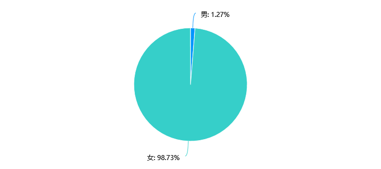 数据显示,参与调查的有效填写人次为79人,其中男性占比1.27%,女性占比98.73%。可以看出,在参与调查的人群中女性占据绝大多数,而男性比例极低。主要原因在于男性教师偏低,同时男同学的专业集体认同感低。