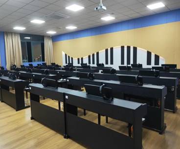 钢琴实训室功能简介:钢琴实训室主要用于对学前教育专业学生进行钢琴专业技能集中教学和学生课外实训。现配置数码钢琴教学中央控制系统,立式钢琴1台,多功能数码钢琴共35架。通过教师演示讲解、学生独奏、合奏、齐奏等形式,提高学生的钢琴演奏水平、即兴伴奏能力及合作意识。相关课程:钢琴基础、弹唱基